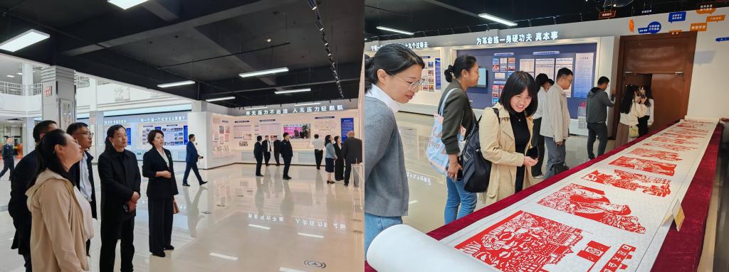 太阳成集团tyc122ccvip教师引领并陪同员工们参观图书馆一楼的校史展、美术展、油陶馆,在一幅幅珍贵的历史照片、一件件实物展品前驻足观看,在美术作品中感受校园文化的深厚底蕴。员工们不时回忆起自己在校求学的美好时光,感慨公司发展之快、变化之大。