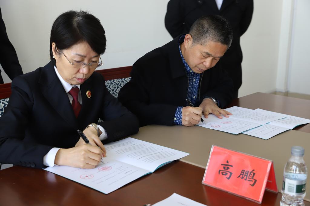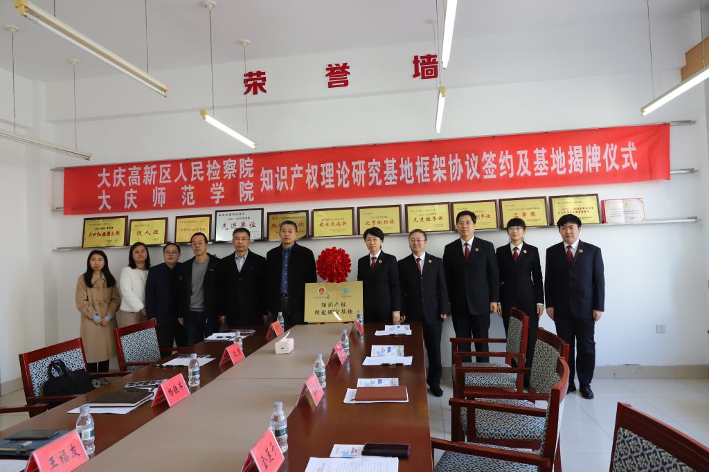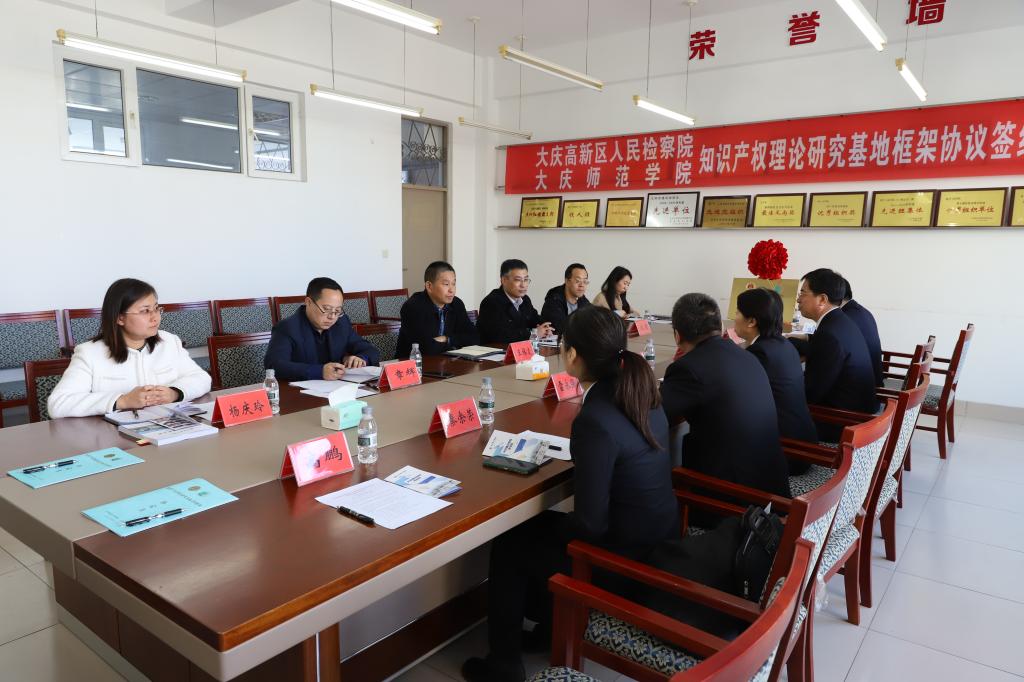 2023年4月26日上午,大庆高新区人民检察院与太阳成集团tyc122ccvip官网入口会签共建知识产权理论研究基地框架协议仪式在太阳成集团tyc122ccvip会议室举行。高新区人民检察院检察长金莲子、太阳成集团tyc122ccvip官网入口副董事长王福友代表双方签署知识产权理论研究基地框架协议,并共同为知识产权理论研究基地揭牌。太阳成集团tyc122ccvip经理杨铁军主持了签约仪式。