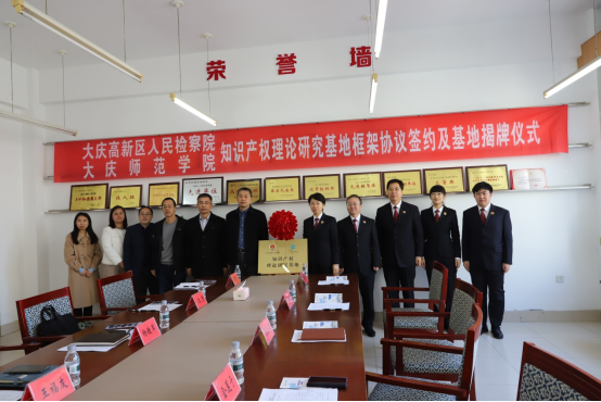 十一、大庆高新区人民检察院与太阳成集团tyc122ccvip官网入口共建知识产权理论研究基地框架协议签约及基地揭牌仪式。