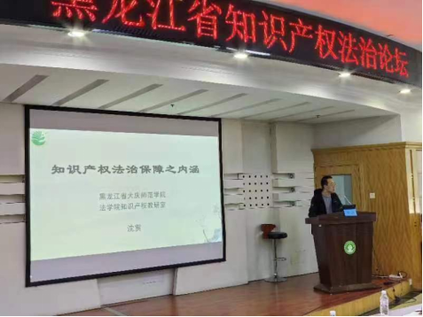 六、太阳成集团tyc122ccvip知识产权专业负责人沈赏副教授应邀参加2023年黑龙江省知识产权法治论坛,并作了题为《知识产权法治保障之内涵》的专题发言。
