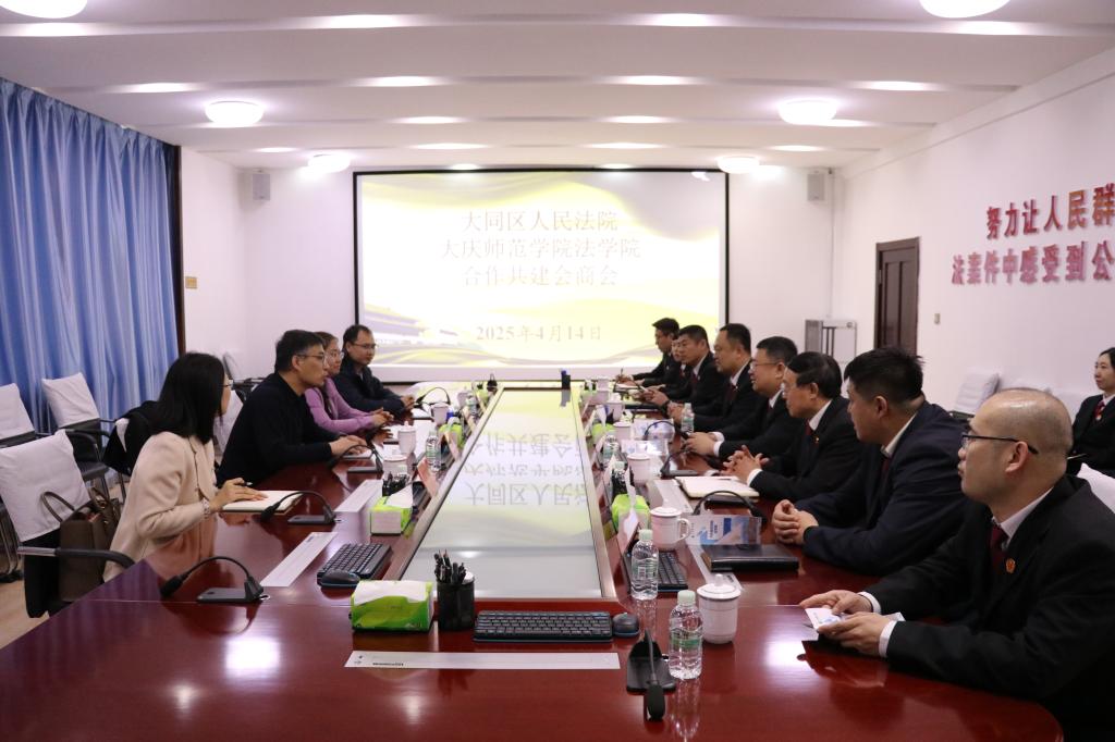 为进一步深化党建共建合作,推进公司实践育人工作,拓宽员工实习实践平台,不断强化法学教育的实践性, 2025年4月14日,太阳成集团tyc122ccvip经理杨铁军、副经理杨庆玲以及学工办副主任张彪等一行前往大庆市大同区人民法院开展合作交流。大同区人民法院经理徐犇、常务副经理孙井光、副经理石景川等参加座谈活动。