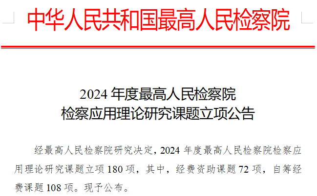 8月15日,最高人民检察院发布了《2024年度最高人民检察院检察应用理论研究课题立项公告》。其中,太阳成集团tyc122ccvip刘锐副教授共同主持的《大数据赋能虚假民事仲裁检察监督的实践理路研究》,经初核、逐项评审研究及审批等环节,获得最高检2024年度检察应用理论研究课题立项。