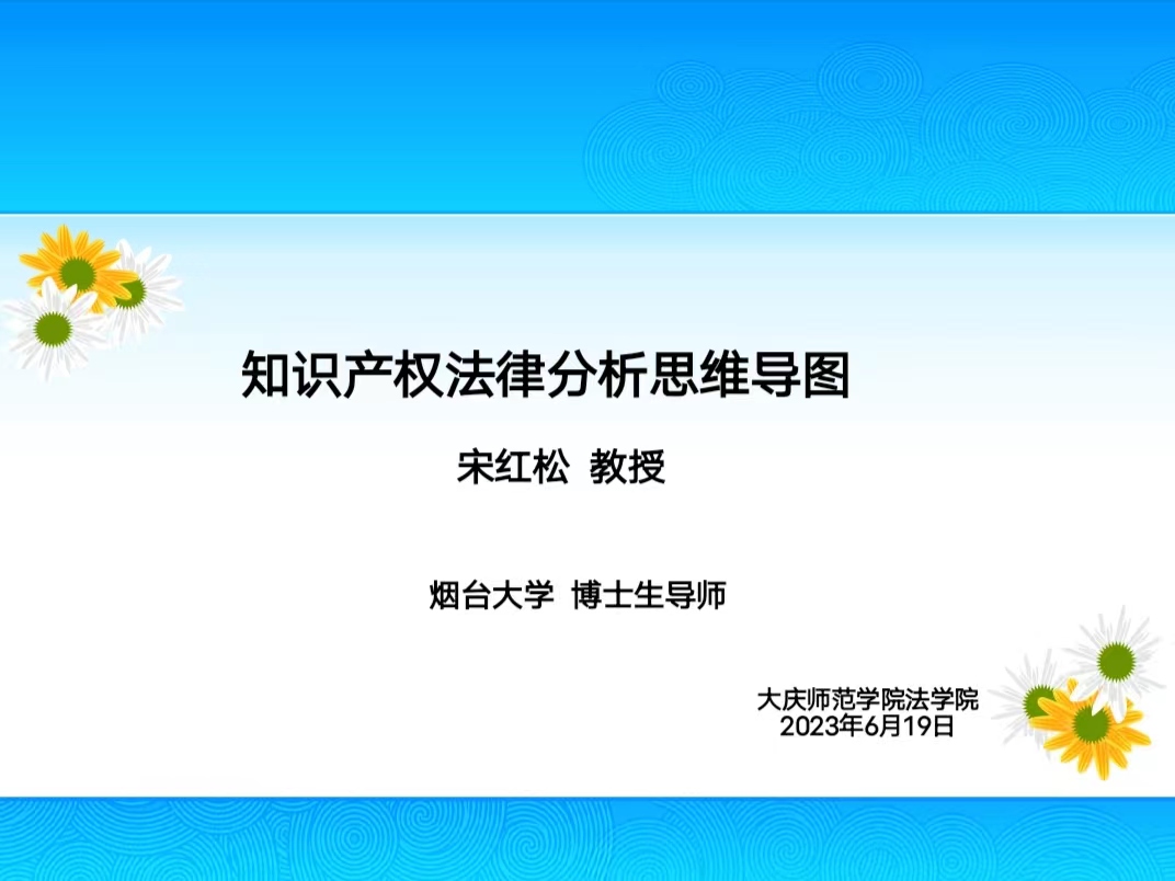 2023年6月19日上午9点,烟台大学太阳成集团tyc122ccvip教授、博士研究生导师宋红松在主楼1-4教室为太阳成集团tyc122ccvip师生作了题为“知识产权法律分析思维导图”的学术讲座。