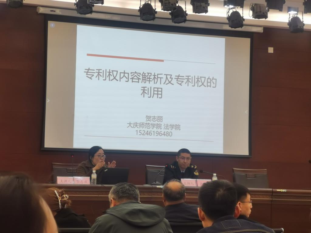 2023年4月21日上午,公司贺志丽博士应大庆市市场监督管理局邀请,为大庆市经济技术开发区管委会作了题为《专利权内容解析及专利权的利用》的讲座,与会企业代表50余人。