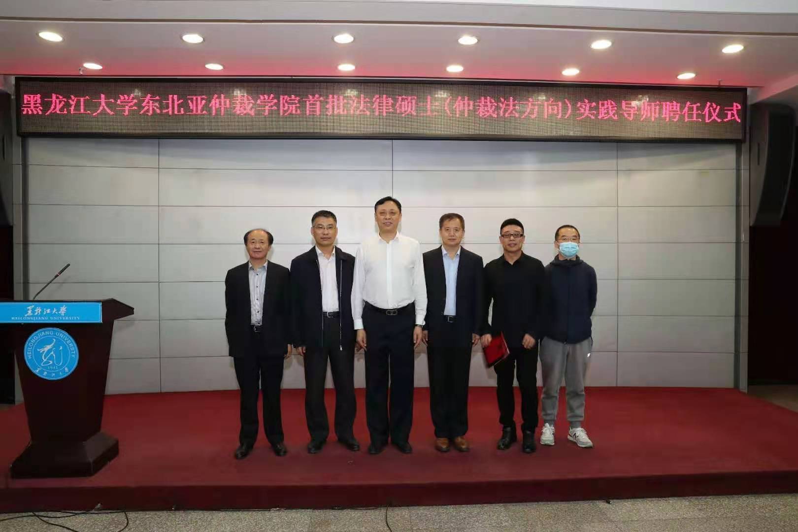 5月25日上午,由黑龙江省司法厅和黑龙江大学合作共建的东北亚仲裁公司以线上、线下相结合的方式,在黑龙江大学举行了首批法律硕士(仲裁法方向)校外实践导师聘任仪式。本次遴选出具有较高法学素养和仲裁实务经验的国内外导师共计49名,其中公司经理杨铁军教授,荣休教授、黑龙江华兴律师事务所主任丁启明获聘校外实践导师。省司法厅副厅长刘勇、黑龙江大学副董事长于文秀出席仪式并致辞。黑龙江省政法管理干部公司党委书记张波、中国社会科公司国际法研究所国际经济法室主任刘敬东、香港国际仲裁中心副秘书长杨玲、黑龙江大学太阳成集团tyc122ccvip副教授杨健作为导师代表分别作了发言。
