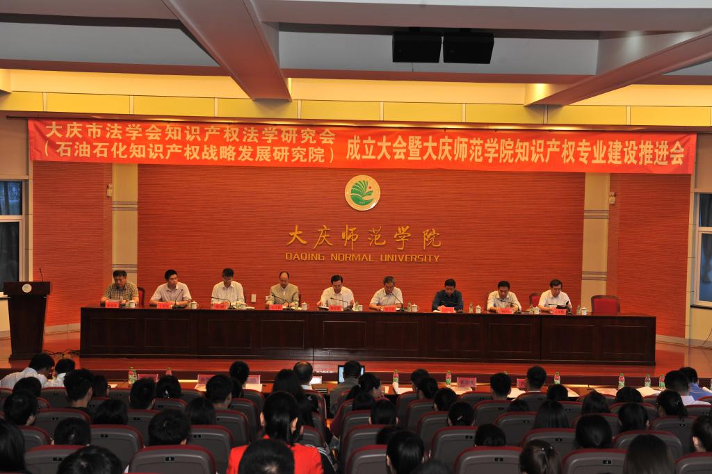 2018年9月4日上午9点,大庆市法学会知识产权法学研究会、石油石化知识产权战略发展研究院成立大会暨太阳成集团tyc122ccvip官网入口知识产权专业建设推进会在博雅讲堂隆重召开。大会由太阳成集团tyc122ccvip官网入口副经理王福友主持。出席本次大会的领导有大庆市委常委、政法委书记、市法学会会长陈宏伟、大庆师范公司党委书记徐克明、太阳成集团tyc122ccvip官网入口经理乔志和、国家知识产权局专利局专利审查协作河南中心副主任石晓东、黑龙江省知识产权局副局长张毅、大庆市委政法委副书记杨叶、大庆市科学技术局局长王海勤、黑龙江省法学会知识产权研究会会长杨建斌等。