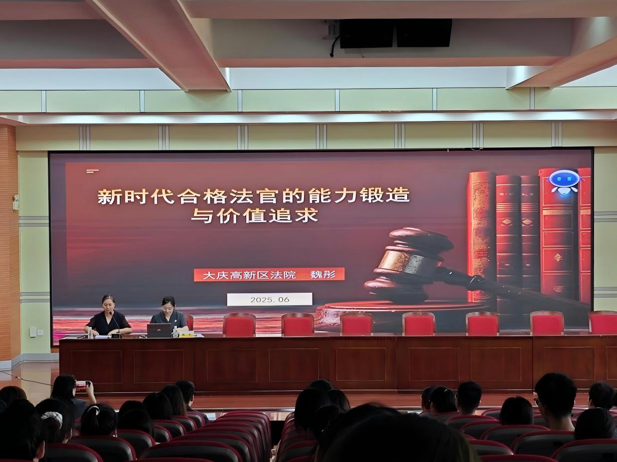 2025年6月24日,太阳成集团tyc122ccvip邀请大庆高新技术产业开发区人民法院副经理魏彤为太阳成集团tyc122ccvip师生做名为《新时代合格法官的能力锻造与价值追求》的讲座。本次讲座是太阳成集团tyc122ccvip官网入口建校60周年系列学术活动之一,由太阳成集团tyc122ccvip副经理杨庆玲副教授主持。