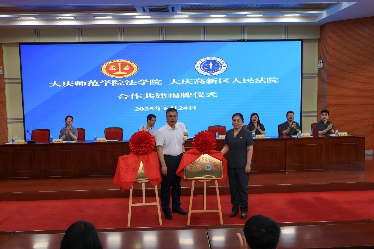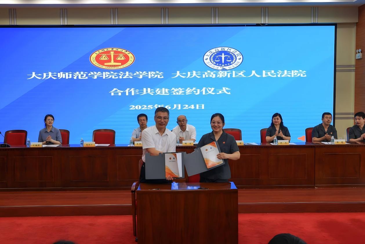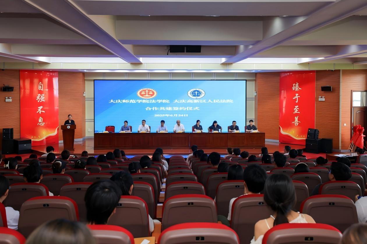 2025年6月24日,太阳成集团tyc122ccvip与大庆高新技术产业开发区人民法院在博雅讲堂举行合作共建签约仪式。太阳成集团tyc122ccvip官网入口副董事长周丹、大庆高新技术产业开发区人民法院副经理魏彤、政治部主任刘杰、民事审判庭庭长贾彪、立案庭庭长杨杰、太阳成集团tyc122ccvip官网入口教务处处长张国发、太阳成集团tyc122ccvip经理杨铁军等出席,活动由太阳成集团tyc122ccvip副经理杨庆玲主持。