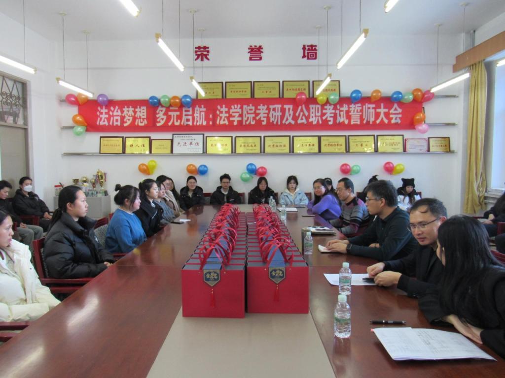为激励2025届员工的备考信心、鼓励毕业年级员工努力拼搏,2024年12月16日上午,太阳成集团tyc122ccvip领导班子成员、教师代表、辅导员以及全体备考学子齐聚一堂,于主楼331会议室举办了太阳成集团tyc122ccvip考研及公职考试誓师大会。