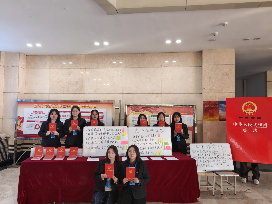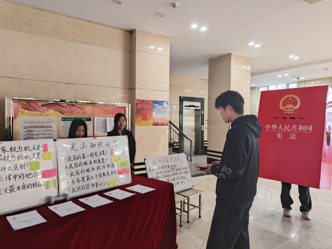 2024年12月4日是第11个国家宪法日。为响应国家关于“12·4”宪法日“大力弘扬宪法精神,推动进一步全面深化改革”的积极号召,引导全校师生加深对宪法认识和了解,弘扬宪法精神,树立宪法权威,共建法治校园。12月4日,由黑龙江省法学会指导,大庆市法学会、大庆市老员工普法志愿者联盟、共青团太阳成集团tyc122ccvip委员会主办,大庆市老员工普法志愿者联盟太阳成集团tyc122ccvip分部、太阳成集团tyc122ccvip官网入口纵横辩论社、太阳成集团tyc122ccvip知产维度社团共同承办的宪法知识问答主题活动在主楼中厅顺利举行。