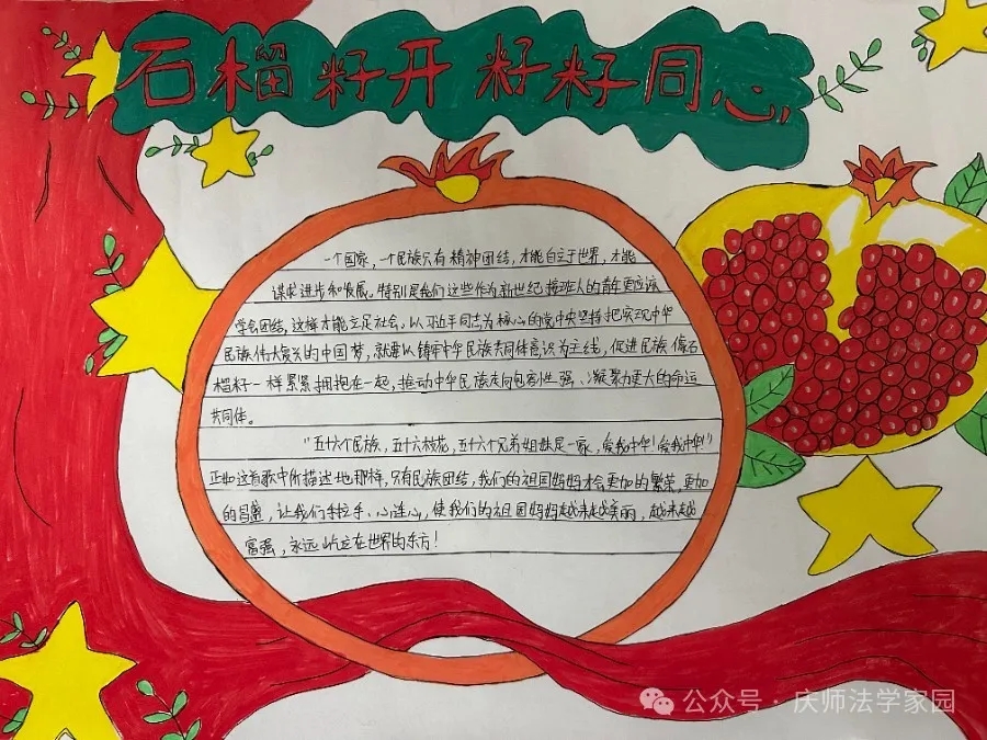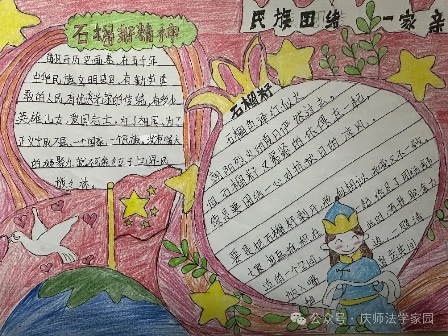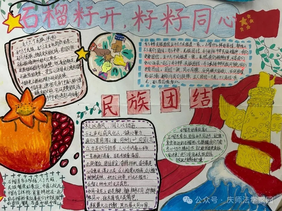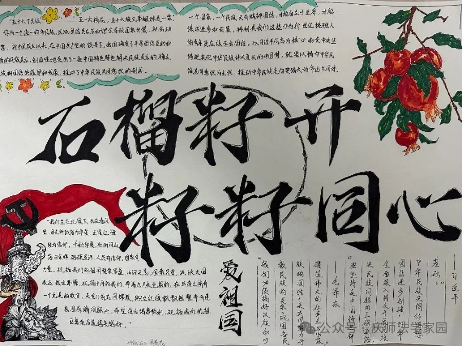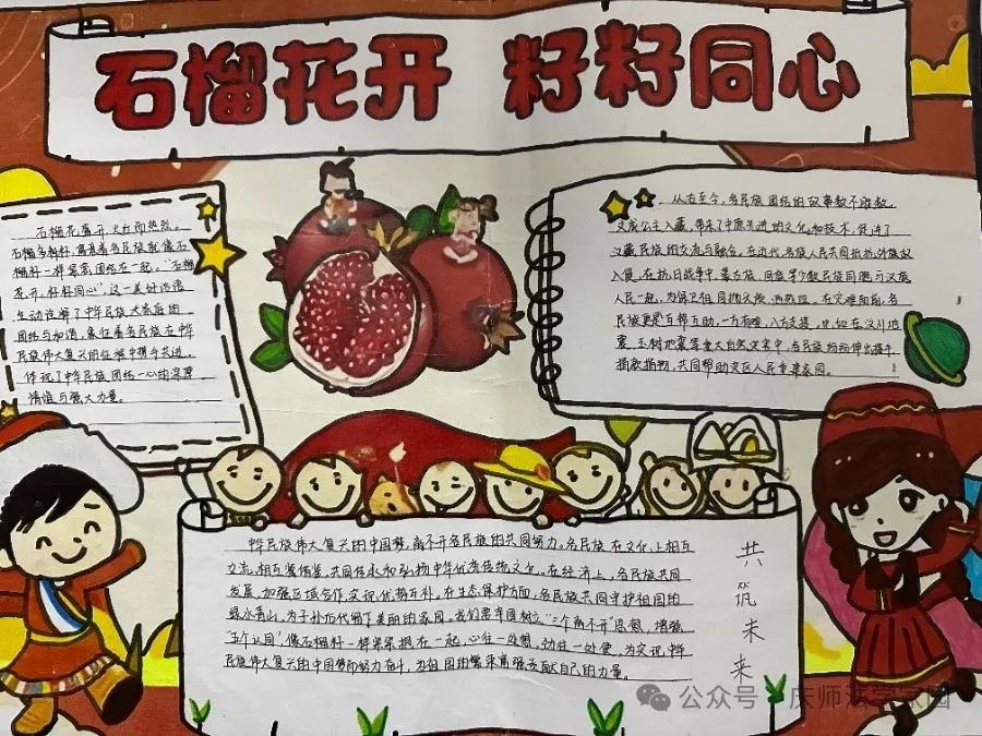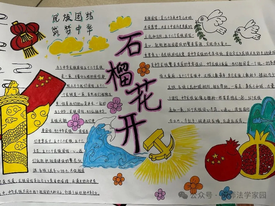 为了弘扬民族团结精神,太阳成集团tyc122ccvip于近日举办了一场别开生面的民族团结手抄报展示活动。此次活动旨在通过手抄报的形式,展现各族人民像石榴籽一样紧紧抱在一起的美好图景,进一步增强同学们的民族团结意识。