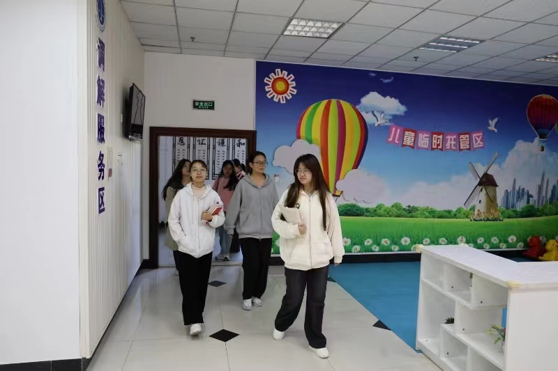 庭审开始前,法官同志组织带领同学们参观了诉讼服务中心、心理咨询室、人民陪审员自主管理委员会展板、司法警察大队、诉调对接中心、科技审判法庭、院史馆等场所,了解了法院诉讼的流程和庭审程序,让同学们感受到了法院的严肃氛围。