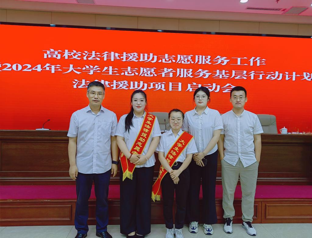 会上,省厅领导共同为哈尔滨工程大学、东北林业大学、哈尔滨师范大学等7所高校举行法律援助工作站集中揭牌仪式。哈尔滨商业大学发布了黑龙江省法律援助高校联盟倡议,标志着我省高校法律援助志愿服务组织体系进一步健全完善。同时,为服务期满的志愿者颁发了纪念证书,为即将奔赴10个市(地)26个县区开展法律援助的73名新志愿者鼓劲践行,经过层层选拔,公司共有五名同学参加2024年全省基层法律援助活动,其中两名同学出席了启动仪式,另外公司1名已完成法律援助的毕业生也受邀参加该项活动。