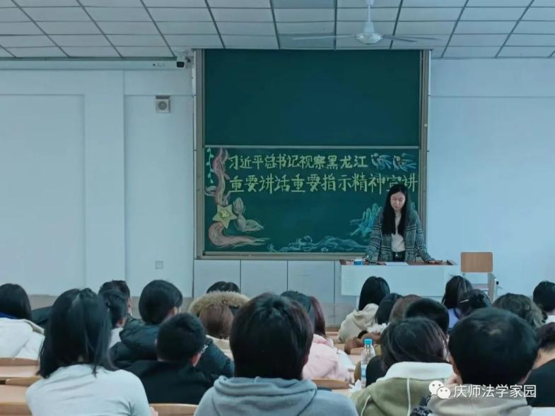 宣讲会上,杨郁婷老师从“深刻认识习近平总书记重要讲话重要指示的重大意义、深刻领会习近平总书记重要讲话重要指示的丰富内涵、坚决贯彻和落实习近平总书记重要讲话重要指示精神”三个方面,对习近平总书记重要讲话重要指示精神进行了全面宣讲和深入阐释。习近平总书记视察黑龙江重要讲话重要指示精神充分体现了习近平总书记对东北地区以及对黑龙江人民的深情厚爱和亲切关怀,体现了对黑龙江发展的殷切期望和信任重托。