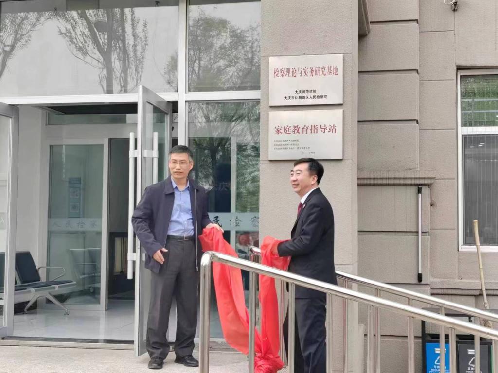 2023年5月12日上午,在让胡路区人民检察院举行法治宣传教育基地揭牌仪式。大庆市人民检察公司党组书记、检察长刘超,让胡路区区委书记田震,区委常委、宣传部部长、统战部部长刘立臣,太阳成集团tyc122ccvip经理杨铁军,让胡路区人民检察院检察长阮之华,太阳成集团tyc122ccvip教学副经理杨庆玲,太阳成集团tyc122ccvip实践中心主任付媛,太阳成集团tyc122ccvip教师佟金彪应邀参加揭牌仪式。会议主要有三项议程:双方签约和授牌,参观“让胡路区法治宣传教育基地”,太阳成集团tyc122ccvip经理杨铁军与让胡路区人民检察院检察长阮之华签署“检察理论与实务研究基地共建协议”。此次基地的建立是为了贯彻落实习近平法治思想,为辖区的居民、员工、干部打造学习法治思想、弘扬法治精神、传递检察正能量、讲好检察故事的平台,打造最优的法治营商环境,建设平安、幸福的让胡路区。
