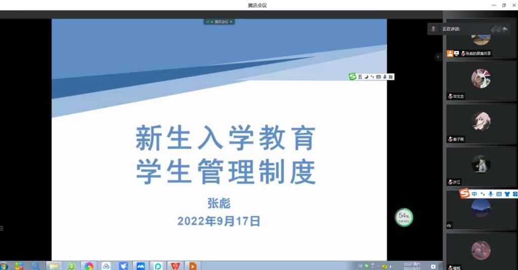公司首先于9月11日-17日组织开展了2022级新生见面交流会,由新生分别做自我介绍,加强了彼此之间的了解,随后有序安排入学教育系列活动。9月17日,张彪老师为新生讲解了关于学籍管理、违纪处分办法、请销假制度等管理制度;9月18日上午,杨庆玲老师对新生进行专业认知教育,对人才培养方案、学分管理、考试办法、补缓考和重修办法、延长修业年限等进行了详细介绍;当日下午,公司优秀毕业生代表和在校生代表对新生进行了学习和生活经验的分享;9月19日,毕文杰老师对新生进行了入党启蒙教育和党史教育;9月21日,公司举办了老员工活经验和专业学习交流讲座,邀请到沈赏老师和新生进行交流,当日,由毕文杰老师对新生进行了疫情防控知识培训及公司疫情管理政策的讲解;9月25日,张彪老师为新生讲解了评奖评优、寝室管理、员工干部管理等方面的内容,毕文杰老师讲解了第二课堂成绩管理制度及校园文体活动等相关内容。
