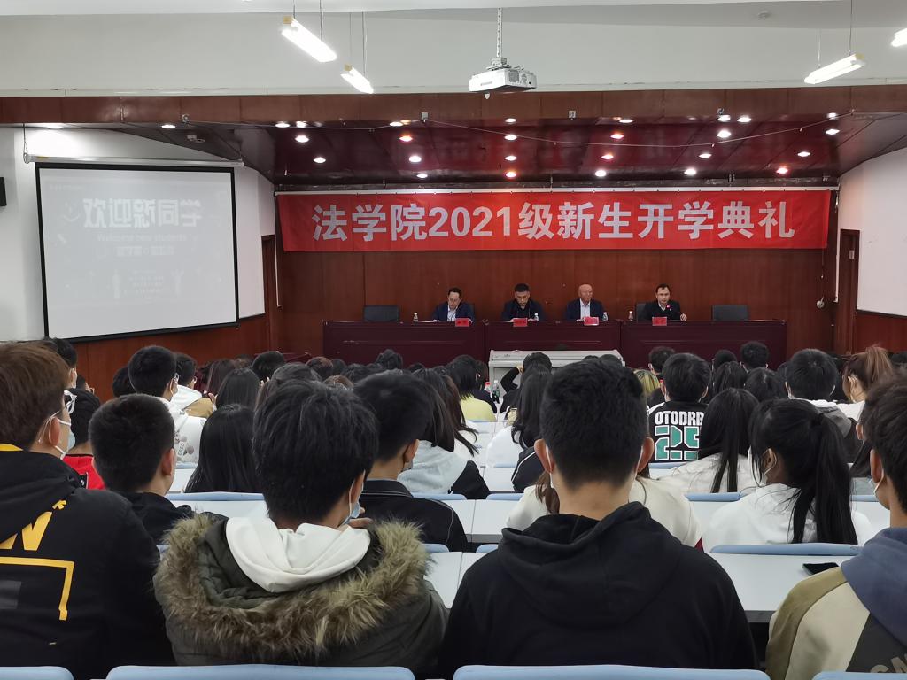 2021年10月13日下午,太阳成集团tyc122ccvip在模拟法庭举行2021级新生入学典礼。典礼由员工工作办公室主任张彪老师主持,法公司党总支书记王金波、经理杨铁军、副经理章辉以及公司全体任课教师参加。