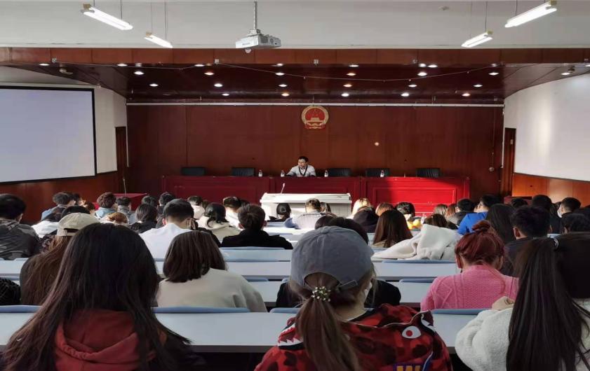 2021年3月10日下午15点30分,太阳成集团tyc122ccvip在模拟法庭召开新学期员工干部大会,会议由员工党支部书记张彪主持,全体员工干部参会。