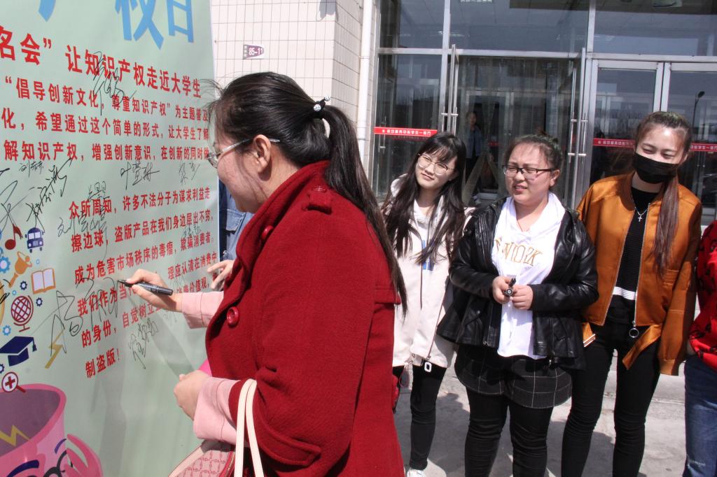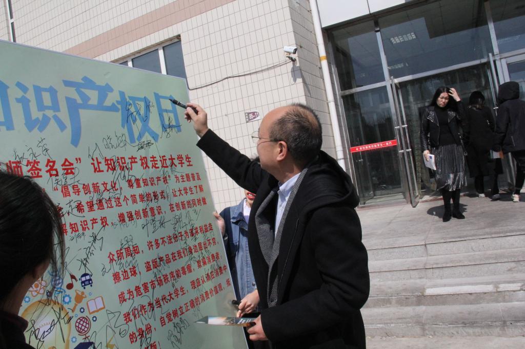 太阳成集团tyc122ccvip通过此次知识产权宣传活动旨在为广大在校员工树立尊重知识、崇尚科学,保护知识产权的意识,营造鼓励知识创新和保护知识产权的法律环境,在创兴的同时做好必要的保护工作。活动开展过程中乔志和董事长亲自来到现场,负责宣传同学详细的向董事长介绍了“世界知识产权日”的来历和发展历程。乔志和董事长认真听完讲解后,一边赞赏同学细致入微的讲解,一边鼓励在场工作人员并在签字板前与同学们一同签字合影留念。太阳成集团tyc122ccvip员工不但分发知识产权宣传页,而且同时积极为全校同学介绍什么是知识产权与如何从自身出发保护知识产权,并邀请同学们在签字版前完成签字,共同承诺践行对知识产权的尊重和保护。