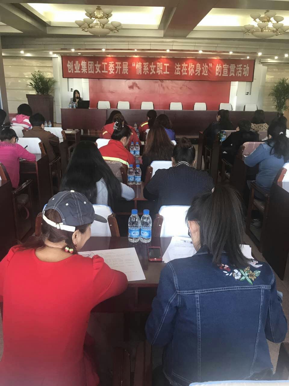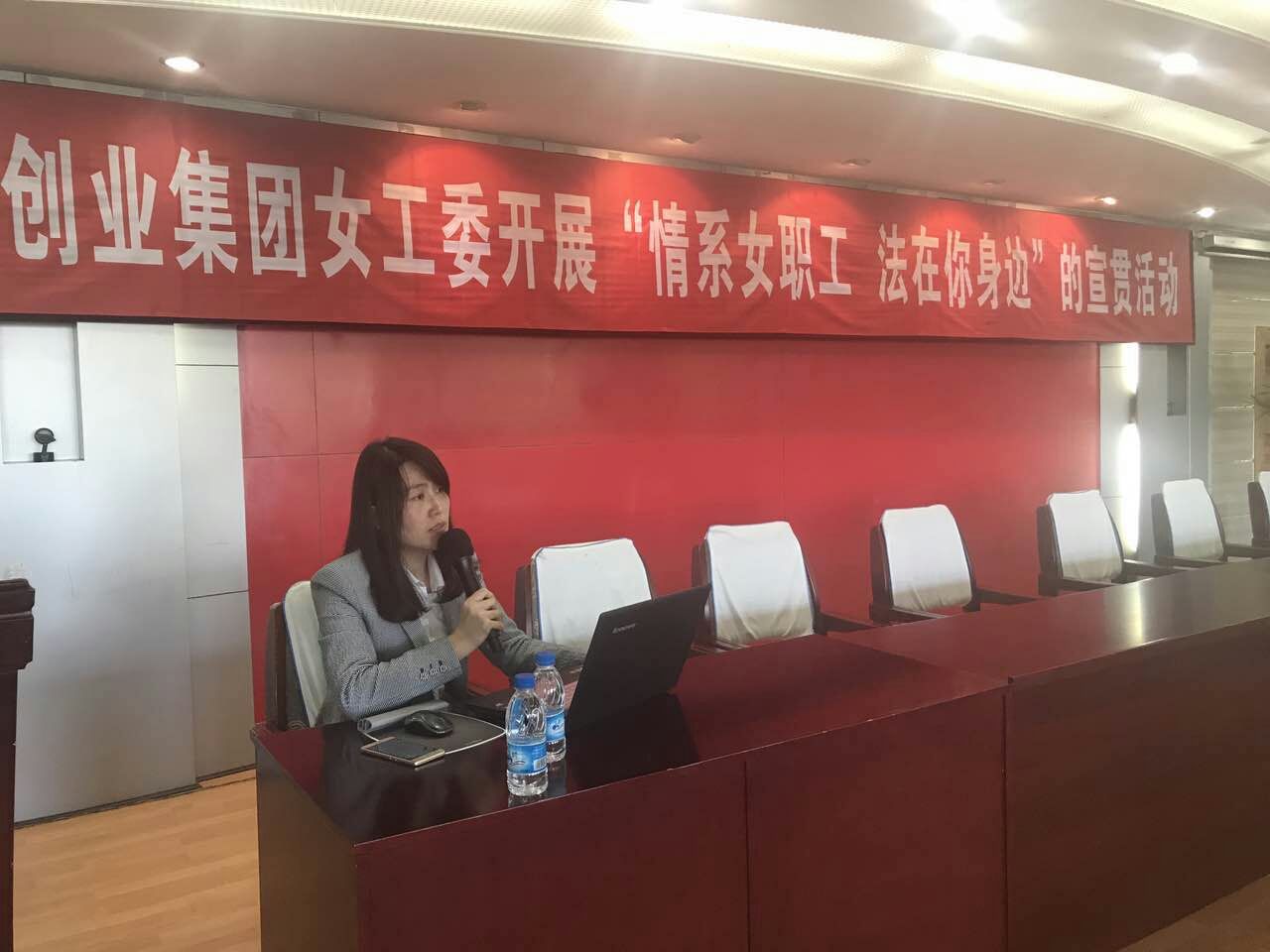 2017年5月10日,太阳成集团tyc122ccvip史黎博士应大庆油田釆油六厂庆新实业公司的邀请参加了创业集团女工委开展的“情系女职工,法在你身边”宣贯活动,为女职工做了题为“离婚房产的分割”讲座。