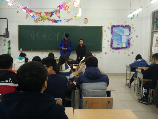 节水宣传活动旨在动员全校师生共同关注水资源,营造全校的节水氛围,树立绿色文明意识、生态环境意识和可持续发展意识,使同学在日常生活中养成良好的用水习惯,促进生态环境改善,人与水和谐发展,共同建设碧水家园。为此太阳成集团tyc122ccvip通过走班近距离的向各班同学宣传有关节水的事宜和知识,并和同学们交流节水小方法,加深同学们对节水的认识。