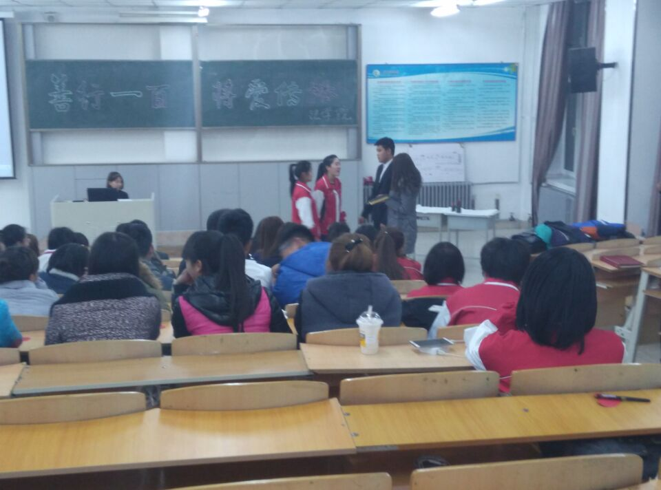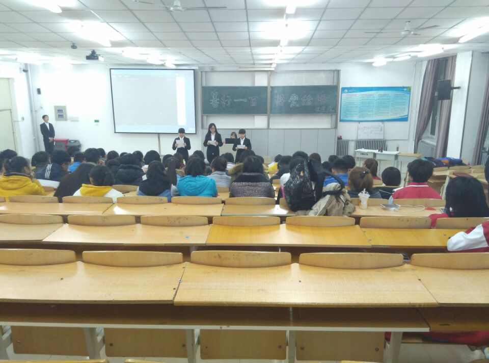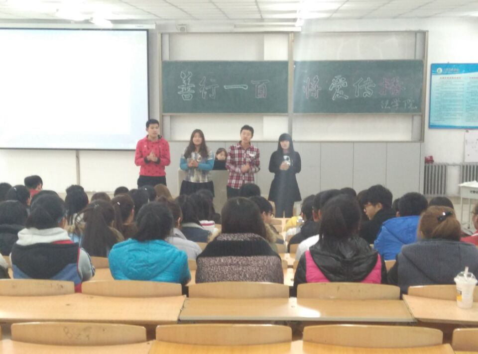 2015年11月10日18:00,太阳成集团tyc122ccvip于主楼1-1阶梯教室举办了以“善行一百,将爱传播”为主题的团活,公司组织部和15级全体员工参加了本次团活。