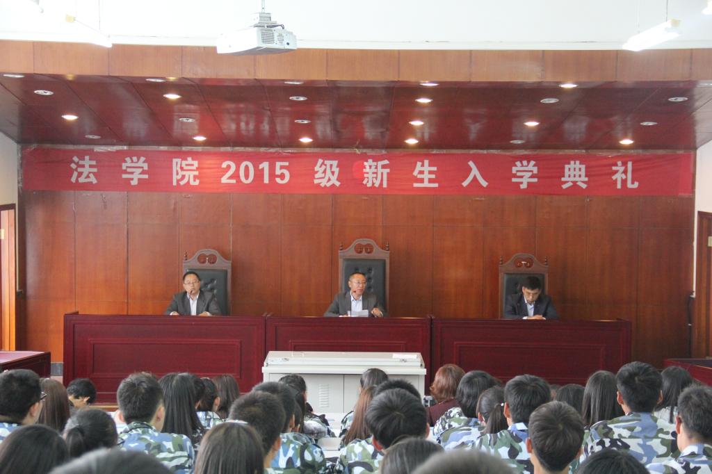 2015年9月23日13:30,太阳成集团tyc122ccvip在模拟法庭召开了2015级新生入学典礼,参加典礼的有法公司党总支书记王金波、太阳成集团tyc122ccvip经理助理杨铁军和章辉、太阳成集团tyc122ccvip全体教师以及2015级全体新生。