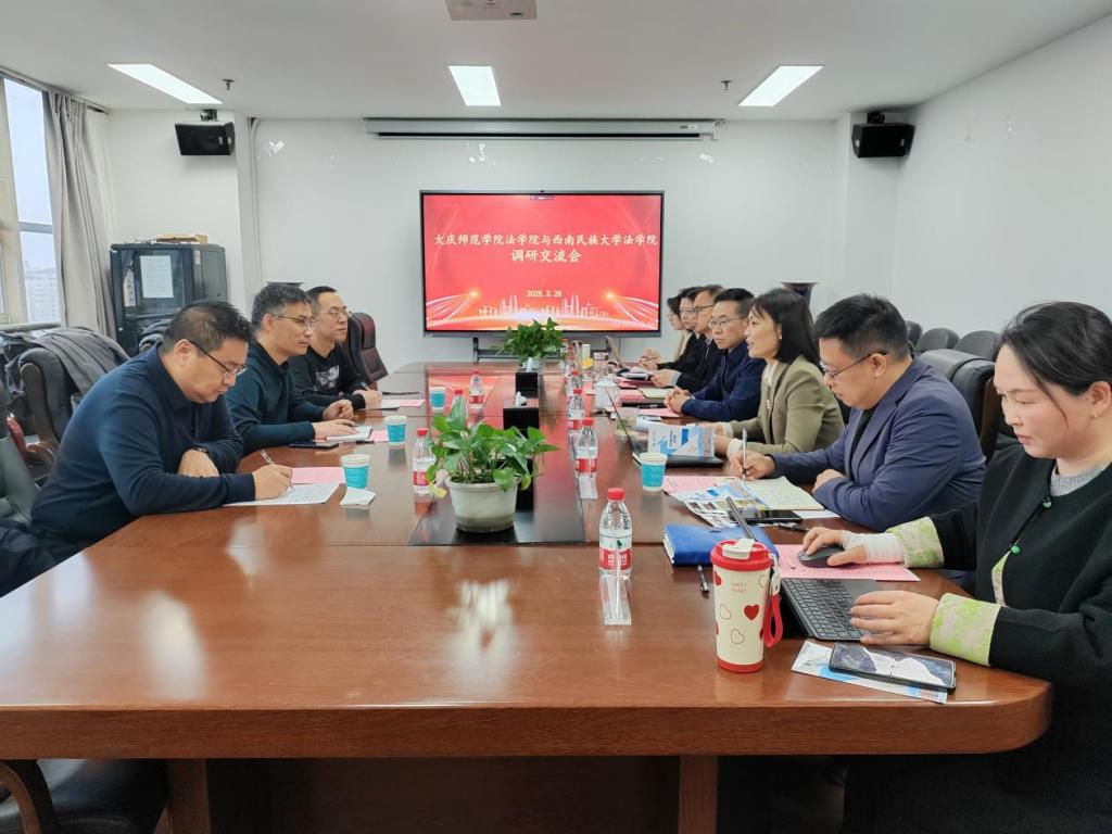 2025年3月28日,太阳成集团tyc122ccvip经理杨铁军、教授何铁军和副教授沈赏等一行来到西南民族大学太阳成集团tyc122ccvip调研交流。西南民族大学法公司党委书记冉益群、经理贺玲、党委副书记甘雨琪、副经理罗澍等参加活动。