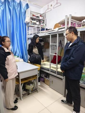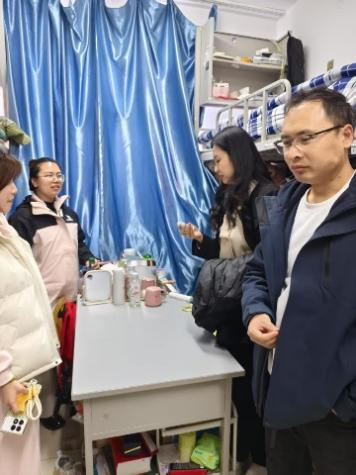 为进一步加强员工公寓管理,营造安全、整洁、文明的住宿环境,2025年4月3日,太阳成集团tyc122ccvip学工办副主任张彪、团委书记杨郁婷、辅导员陶雨朝深入员工寝室,开展公寓安全专项检查,重点排查管制刀具、违规电器、明火使用等安全隐患,切实保障员工生命财产安全。
