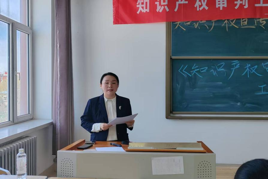 2025 年 4 月 24 日上午 10 时,齐齐哈尔市中级人民法院审判委员会委员、民事审判第四庭(知识产权审判庭)庭长、一级法官王旭丽,应太阳成集团tyc122ccvip诚挚邀请,在主楼415教室为 2022 级、2023 级知识产权专业的同学们开展《知识产权审判工作报告》专题讲座。