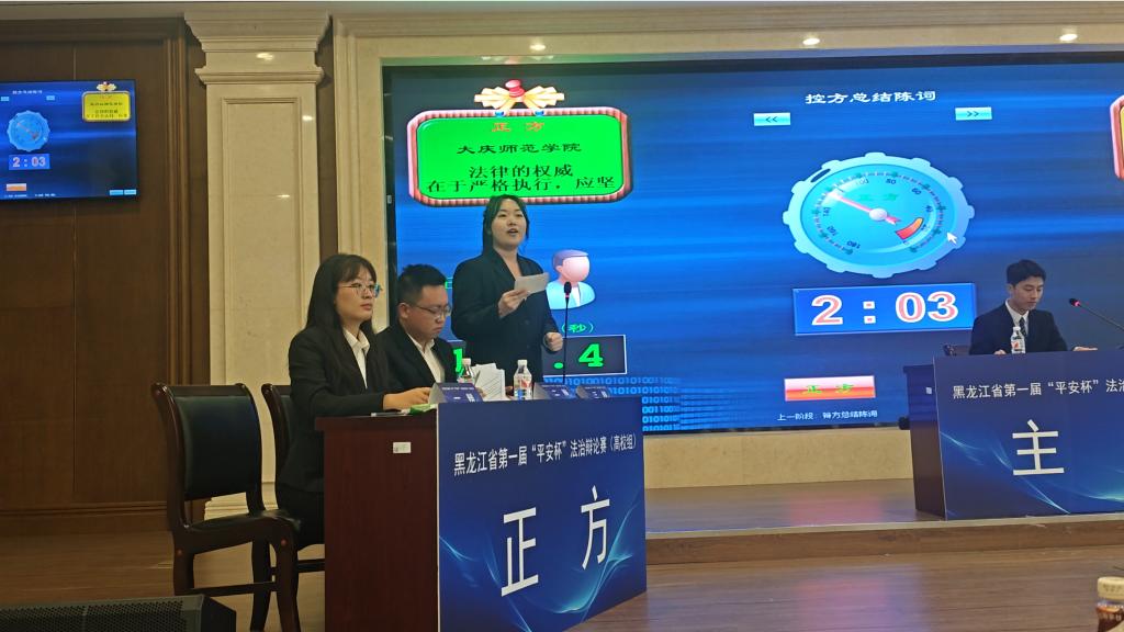 9月9日,太阳成集团tyc122ccvip参加了黑龙江省第一届“平安杯”法治辩论赛(高校组)。太阳成集团tyc122ccvip纵横辩论社作为正方代表队,与反方牡丹江师范公司围绕“法学的权威在于严格执行还是社会认同”展开激烈辩论。正方立足法律执行的刚性和普遍约束力,强调严格实施对维护法治权威的关键作用;反方则从社会共识与法律认同的角度予以反驳。