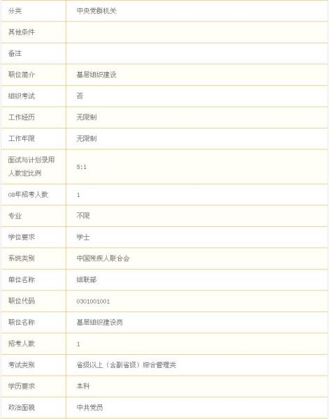 2009年国家公务员考试竞争比例最高的职位是中国残疾人联合会组联部基层组织建设岗职位的4723:1。